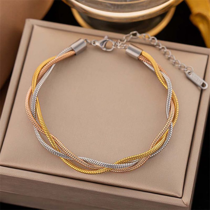 Stainless Steel Gold Color Thick Snake Chain Cross Weave Twist Bracelet for Women Wrist Chains Trendy Party Jewelry Gift