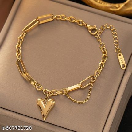 Stainless Steel Stylish Heart Layered Chain Bracelet With Gold-Plated For Women & Girls
