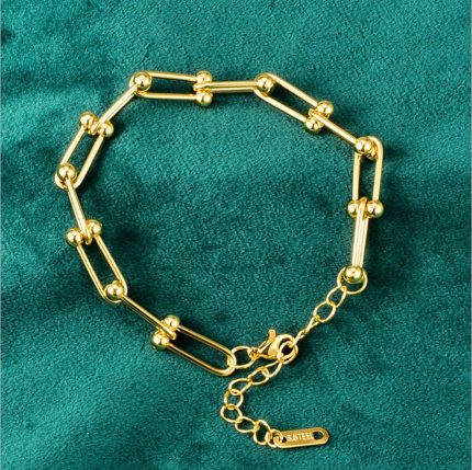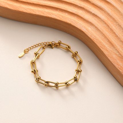 Stainless Steel Stackable Gold Horseshoe Chain Bracelets With Gold-Plated for Women & Girls