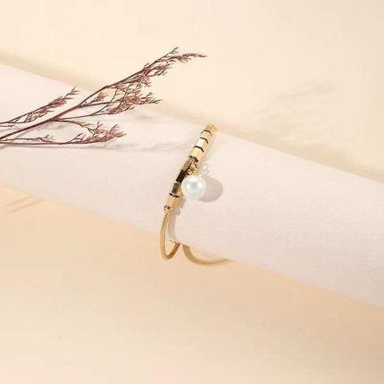 Stainless Steel Western Fashion New Personalized Creative Titanium Imitation Pearl Chain Bracelet For Women & Girls