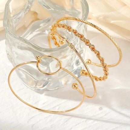 Trendy Gold Punk Opening Bracelets Set Gold Color Geometric Relief Pattern Creative Bangle for Women Fashion Jewelry Gifts