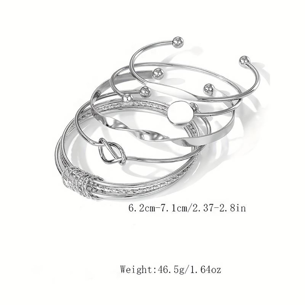 Bohemian Leaves Bracelet Set of 4pcs For Women & Girls Gold Color Heart Geometric Charm Open Cuff Bangle