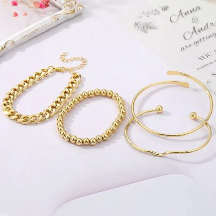 Trendy Punk Bracelets & Bangles Set of 4Pcs With Gold Plated Bracelets For Women Classic Bead Chain Bracelet Girls Trendy Jewelry Gifts