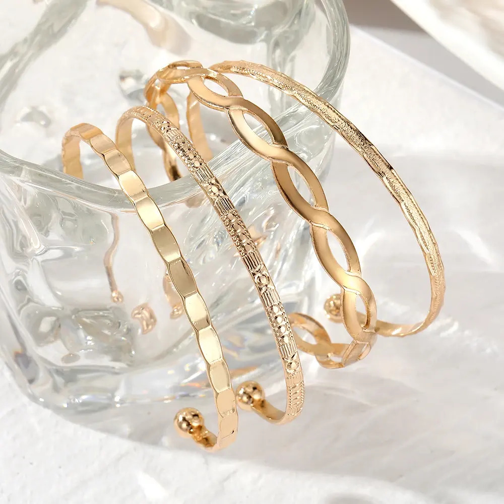 Trendy Gold Punk Opening Bracelets Set Gold Color Geometric Relief Pattern Creative Bangle for Women Fashion Jewelry Gifts ₹1,329.00 Original price was: ₹1,329.00.₹280.00Current price is: ₹280.00.Piece
