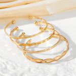 New Designer Bracelet Set of 4pcs For Women & Girls Gold Color Heart Geometric Charm Open Cuff Bangle