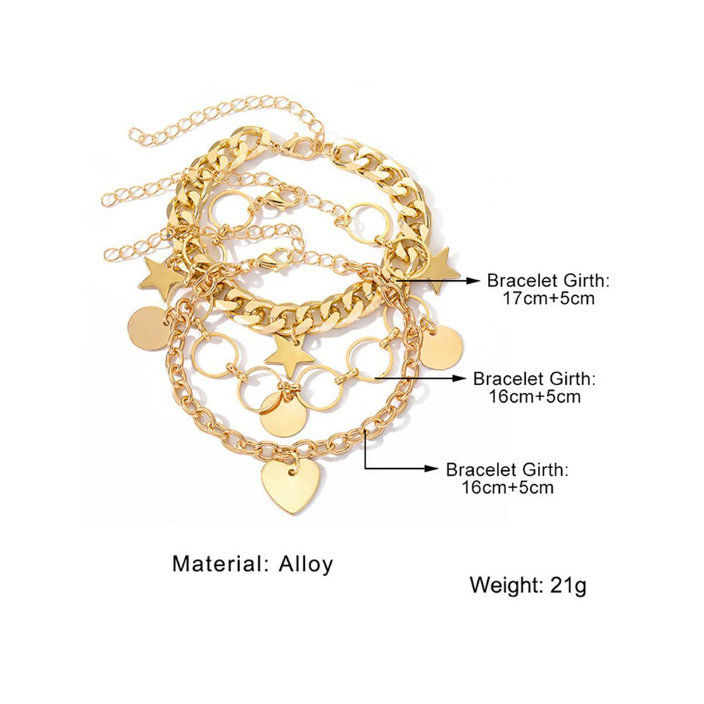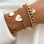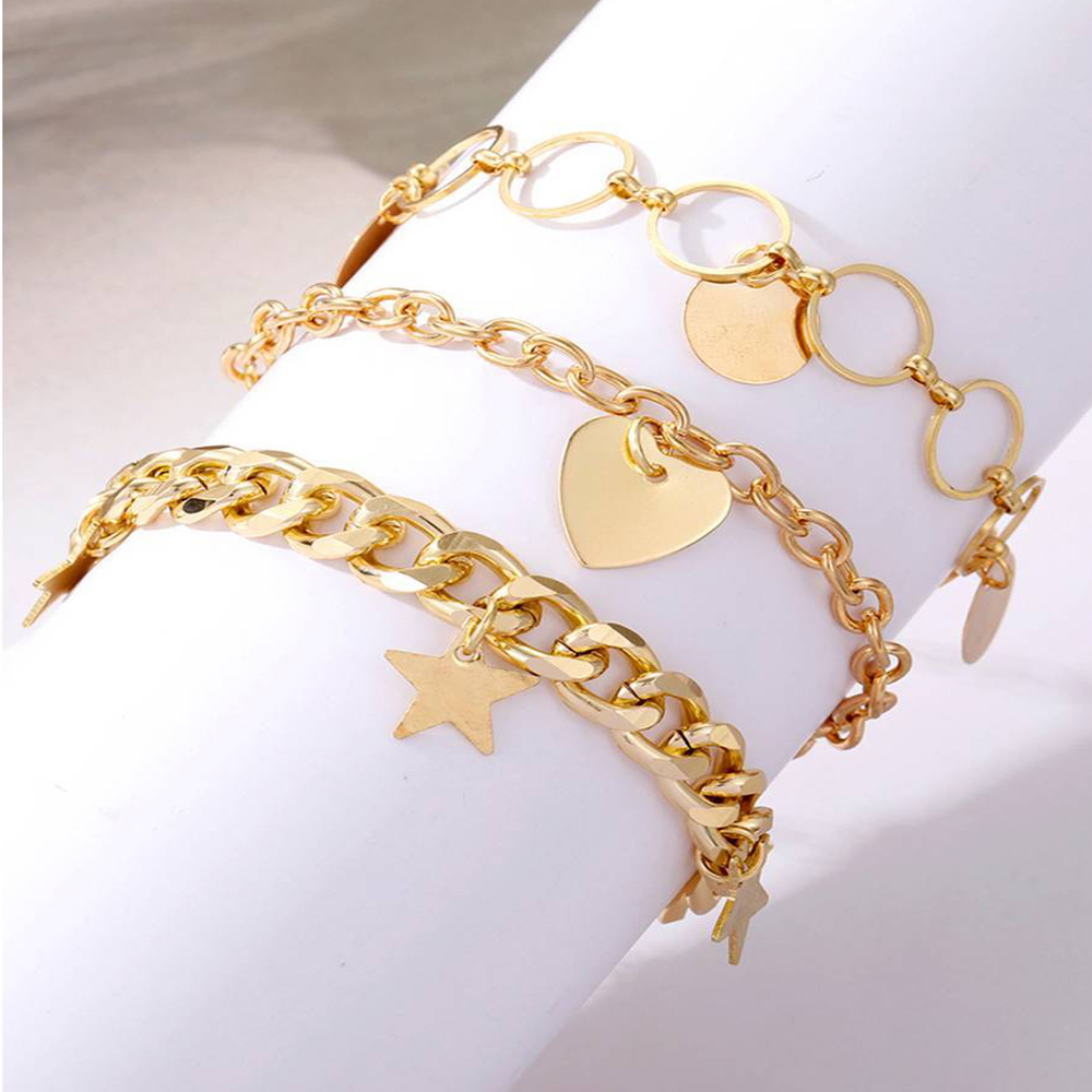 New Designer Bracelet Set of 3pcs For Women & Girls Gold Color Heart Geometric Charm Open Cuff Bangle