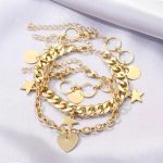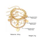 Bohemian Leaves Bracelet Set of 4pcs For Women & Girls Gold Color Heart Geometric Charm Open Cuff Bangle