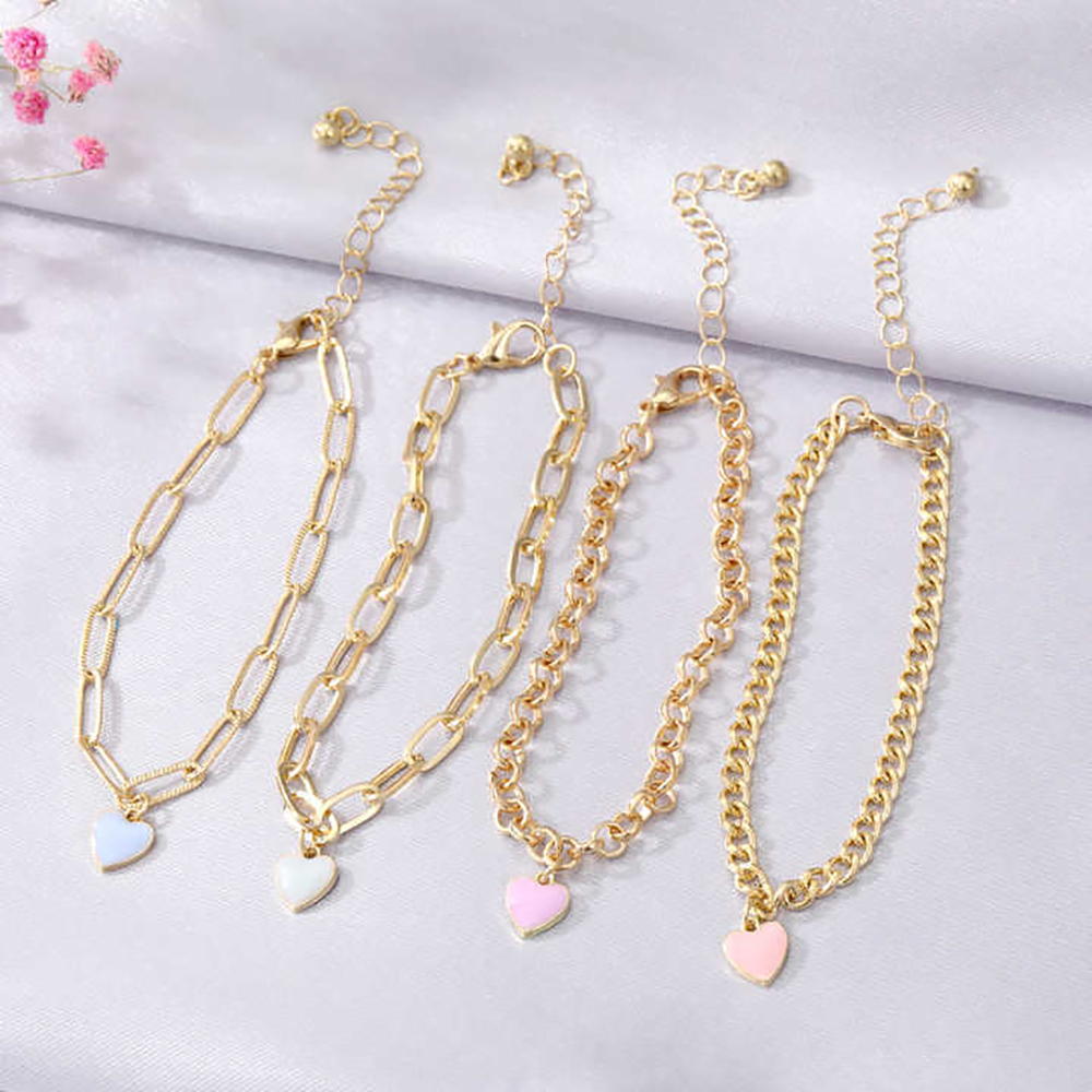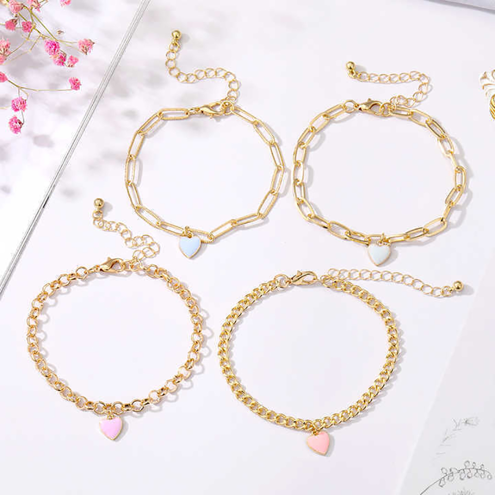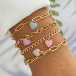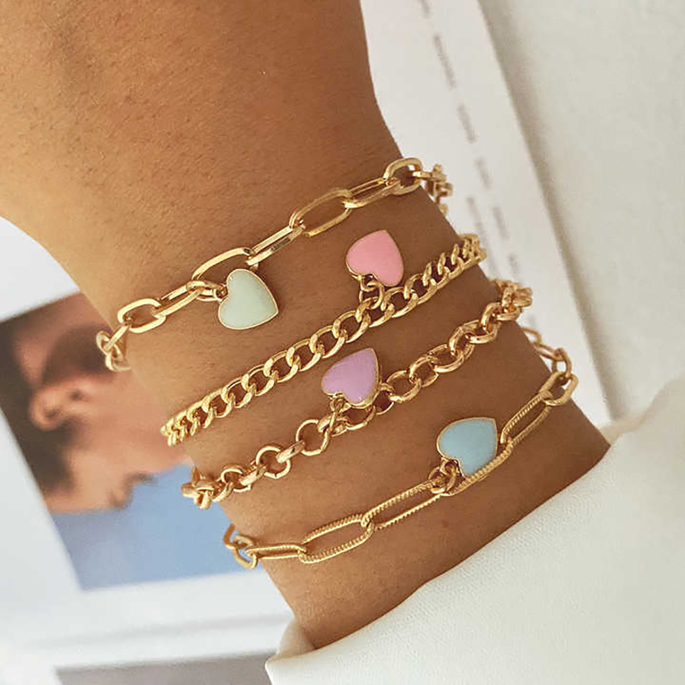 New Multilayer Heart Charm Bracelet Adjustable Colorful Enamel Heart Clip Chain Bracelet Set For Women And Girls