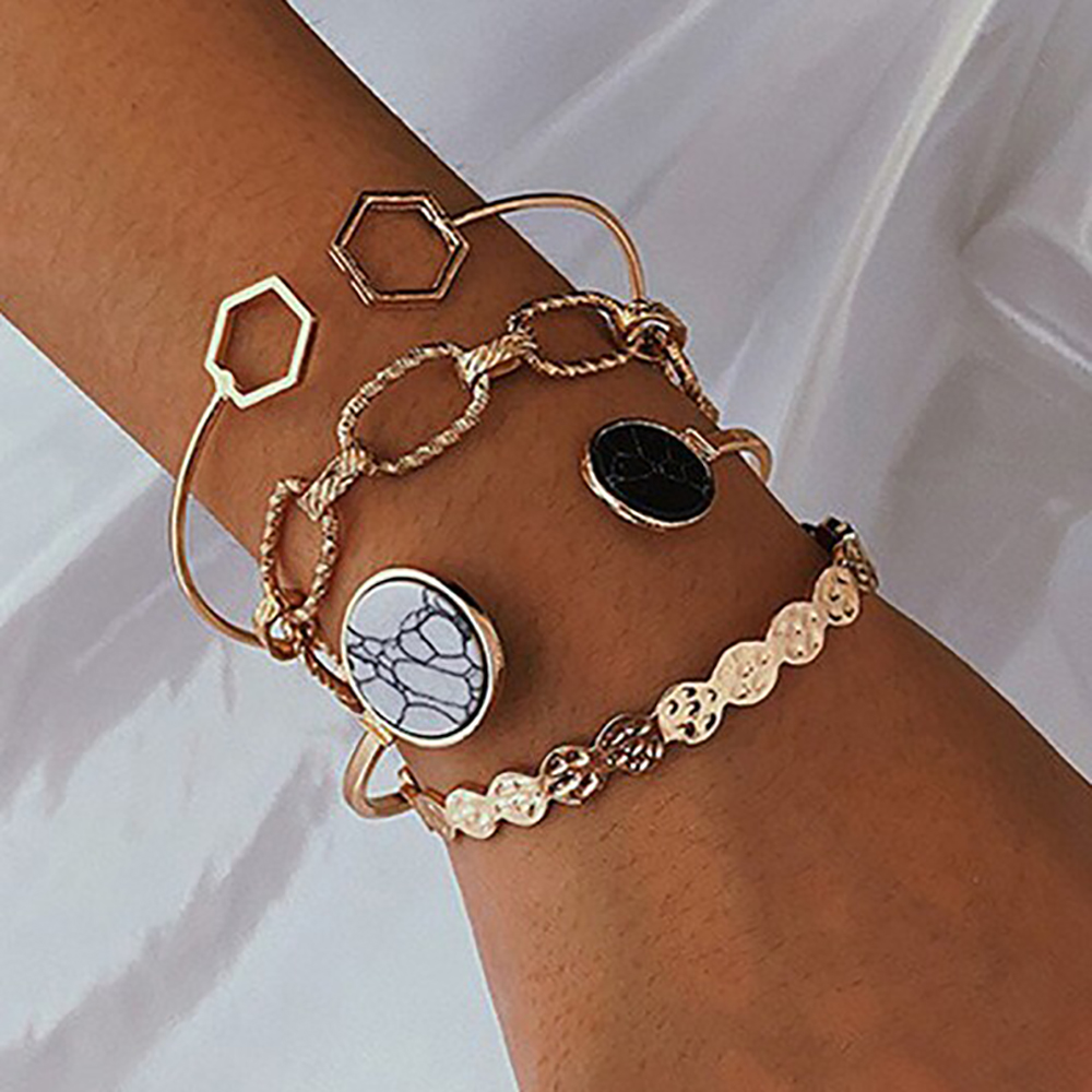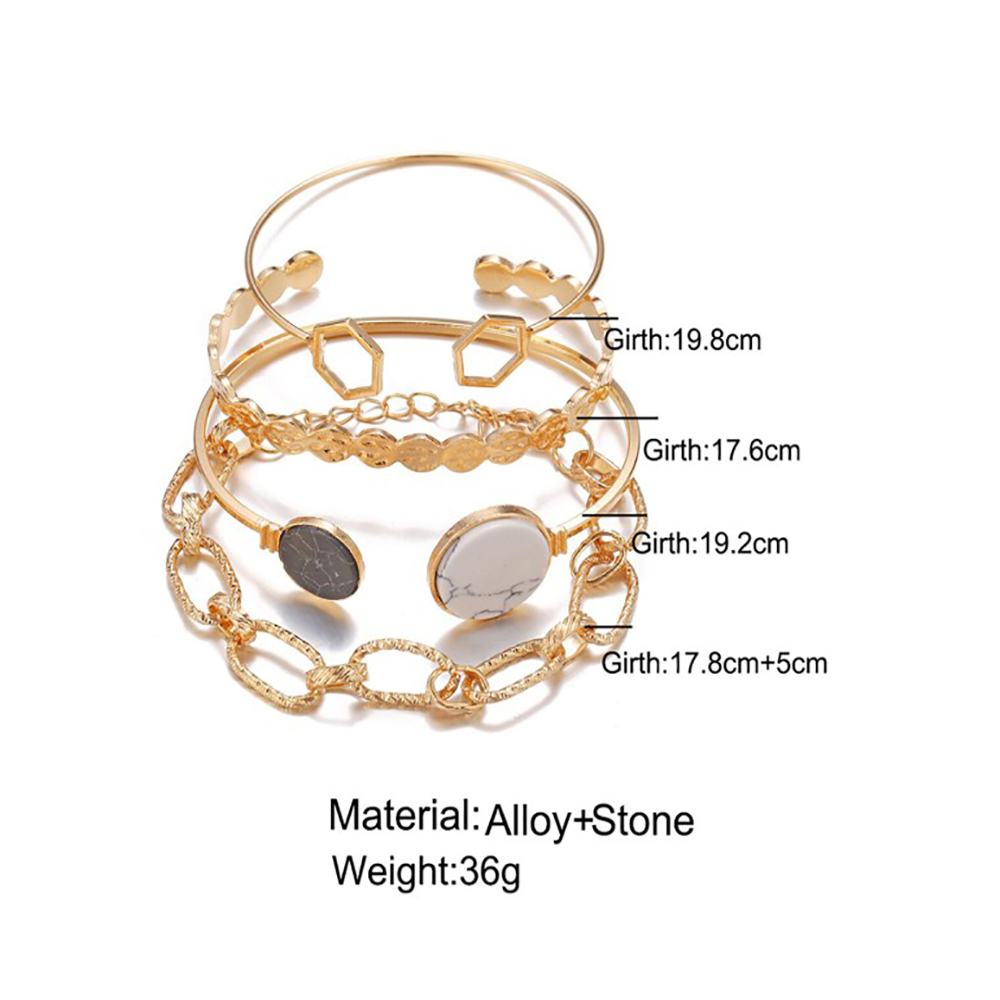 Bohemian Leaves Bracelet Set of 4pcs For Women & Girls Gold Color Heart Geometric Charm Open Cuff Bangle