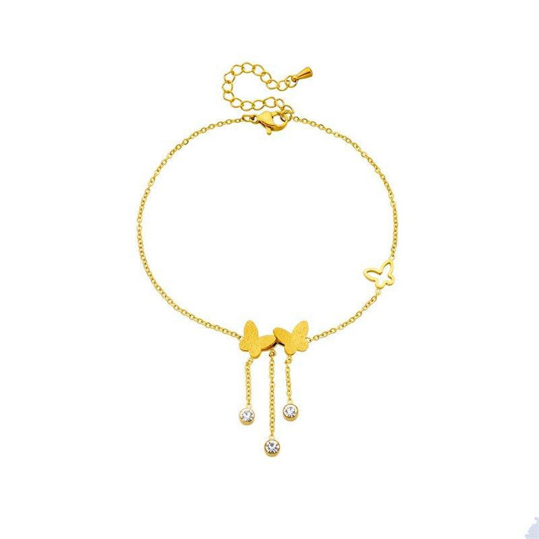Stainless Steel Butter-fly Chain Bracelet Three-Dimensional Gold-Plated Bracelet For Women & Girls