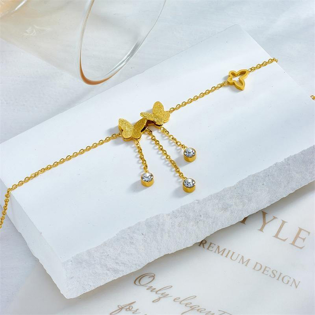 Home Bracelets Stainless Steel Butter-fly Chain Bracelet Three-Dimensional Gold-Plated Bracelet For Women & Girls