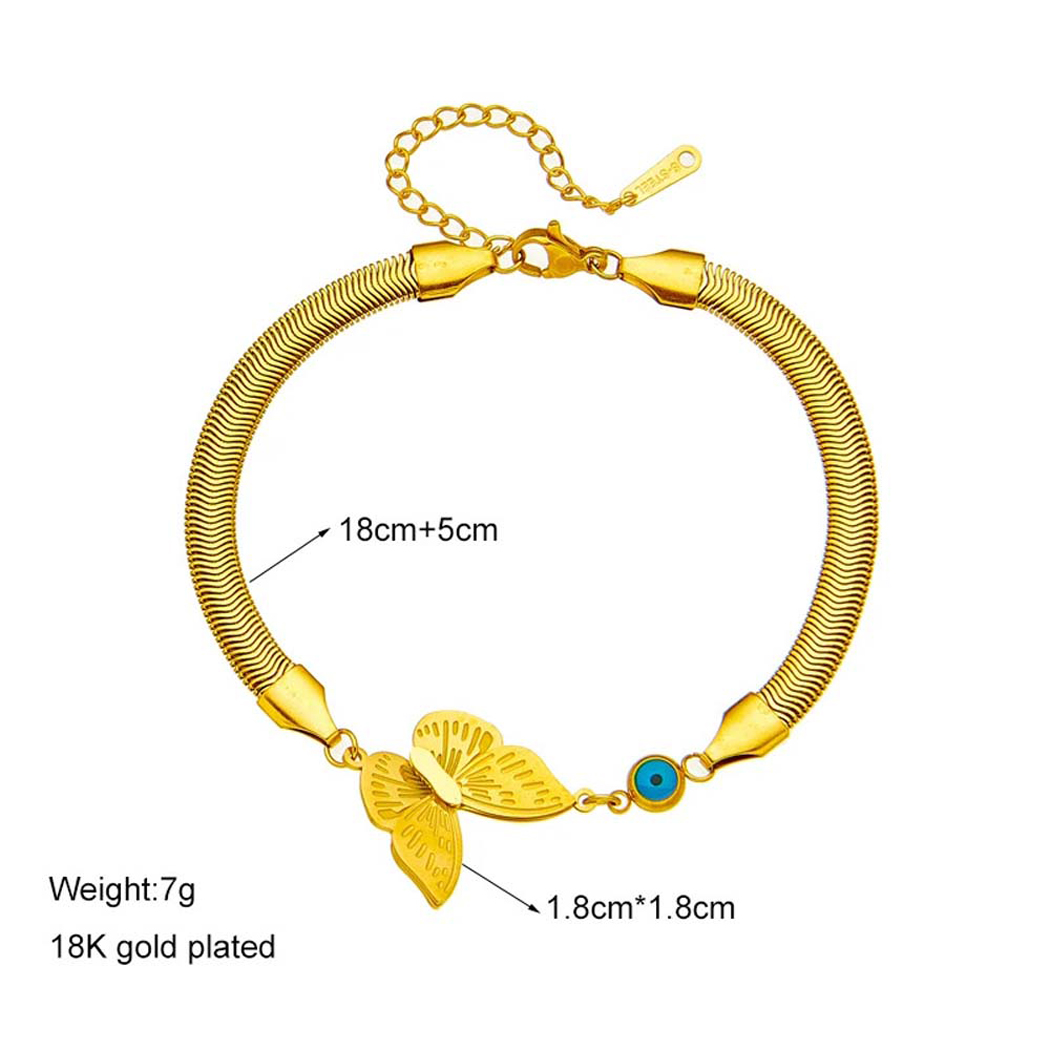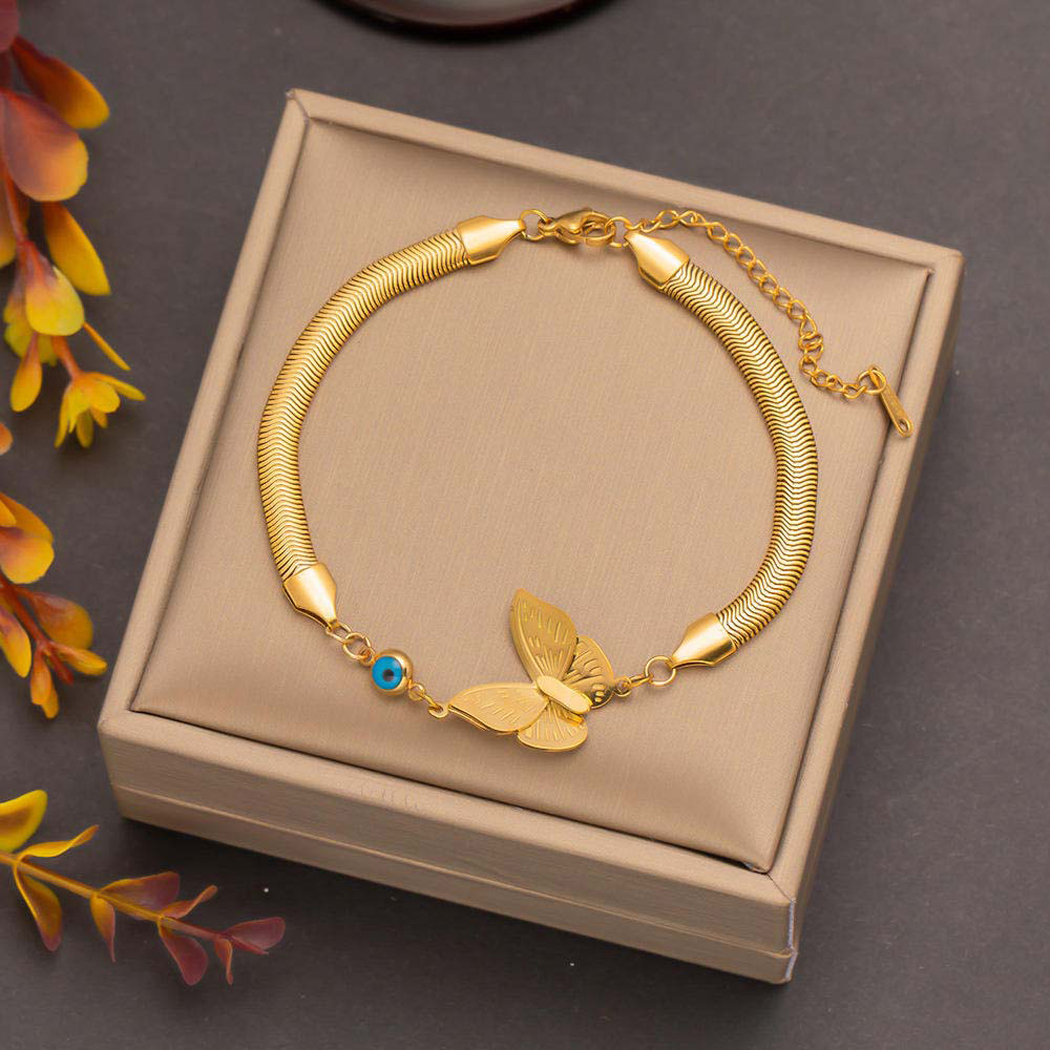 free. This type of bracelet is often favored for its durability, affordability, and stylish design, making it a popular choice for both casual and formal wear. When purchasing a stainless steel anti-tarnish butter-fly bracelet, you may want to consider factors such as the quality of the stainless steel used, the design and craftsmanship of the bracelet, and any additional features such as adjustable clasps or embellishments. Ad Additionally, proper care and maintenance will help prolong the life and beauty of the bracelet, ensuring that it remains a cherished accessory for years to come. Mostly world wide and western culture used this type of bracelets and make him self more satisfying and most happily enjoy all Functions with these Bracelets.