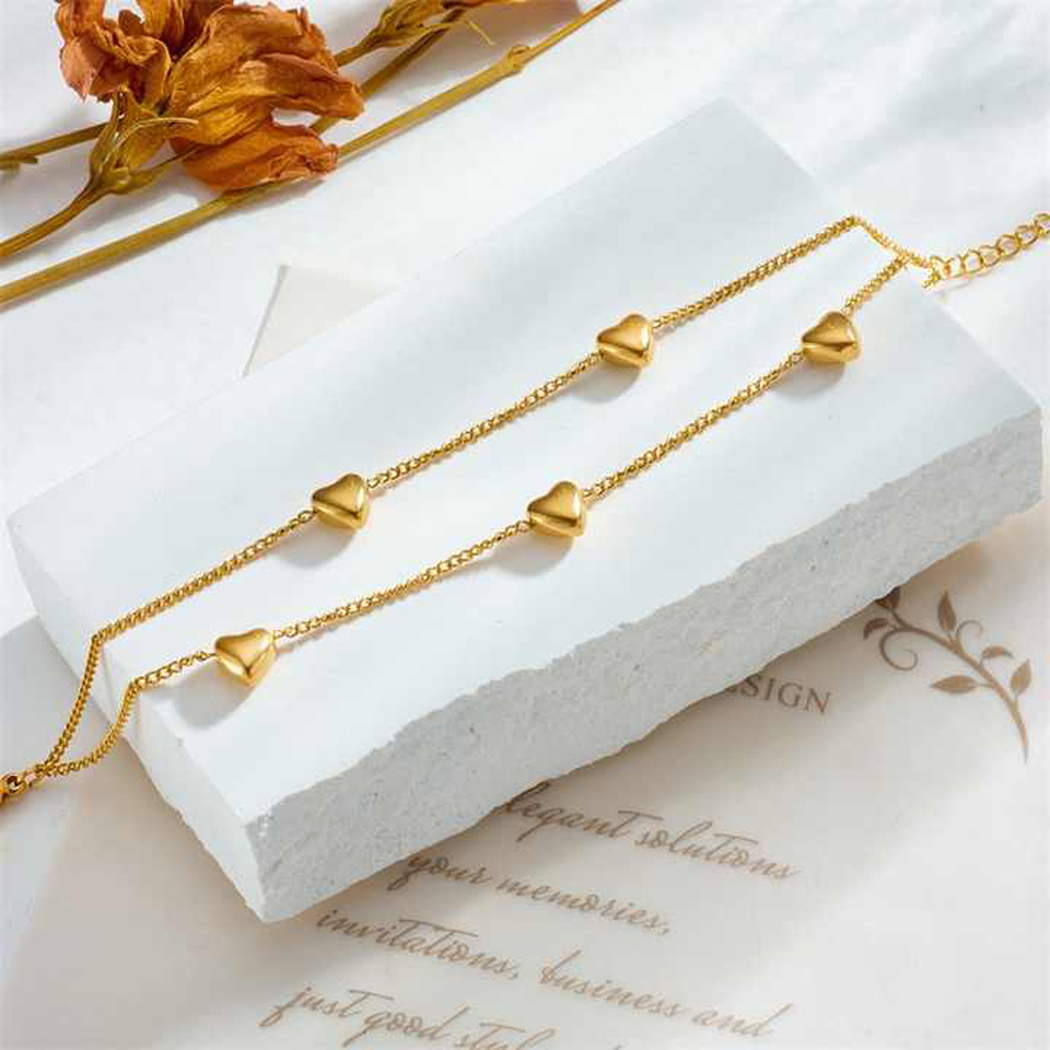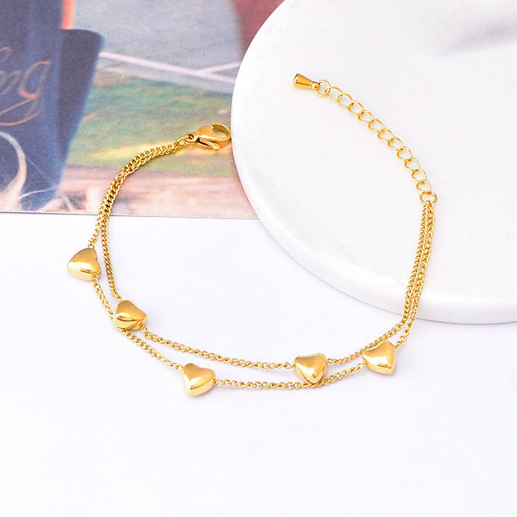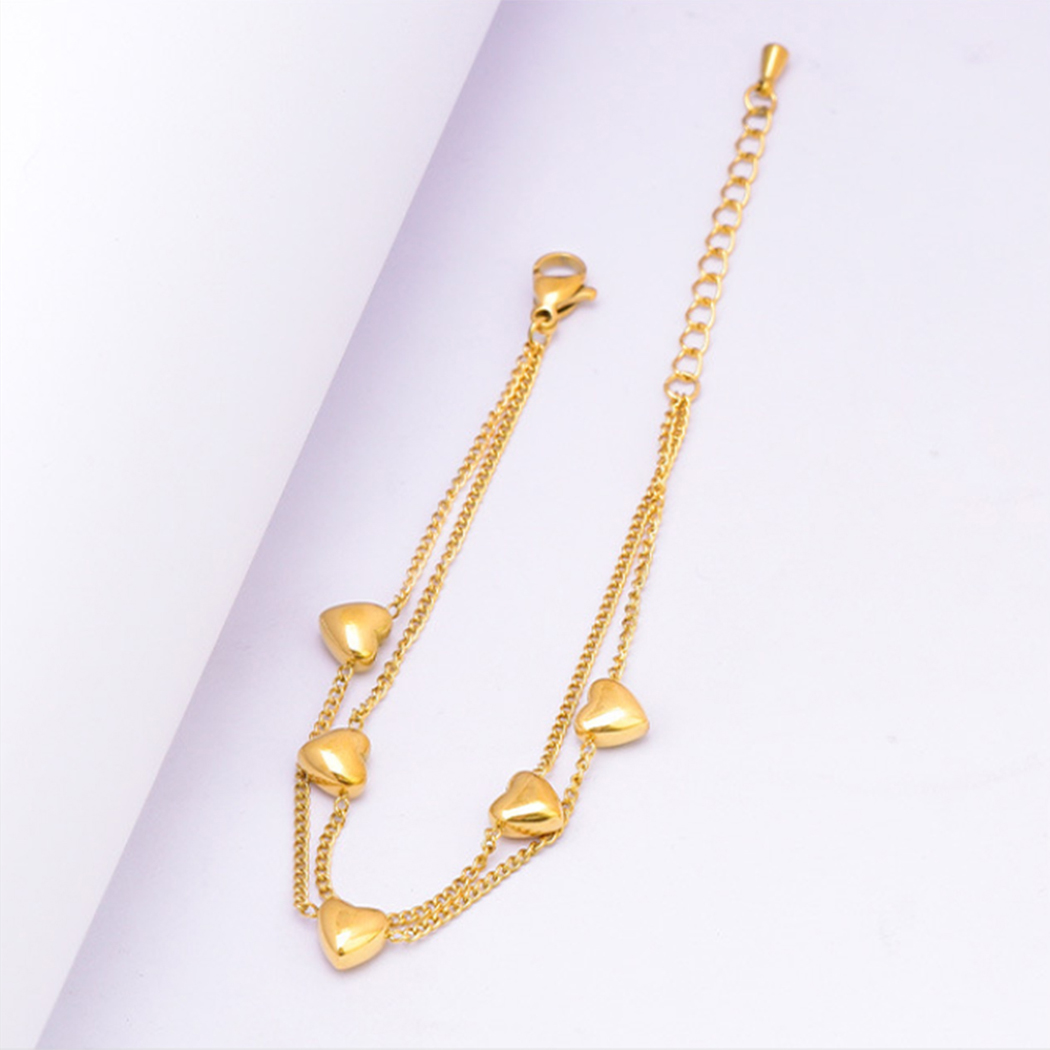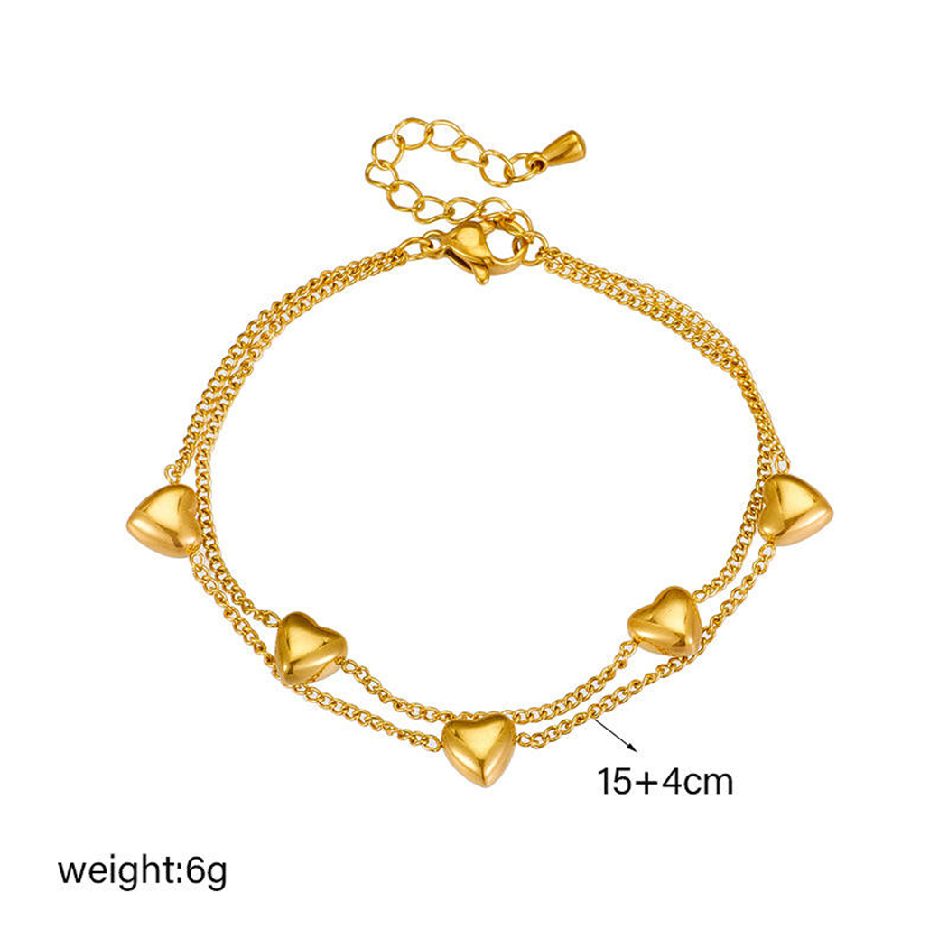 Stainless Steel Heart Bracelet Simple Personality Double Layer Peach Heart Hand Jewelry For Women & Girls