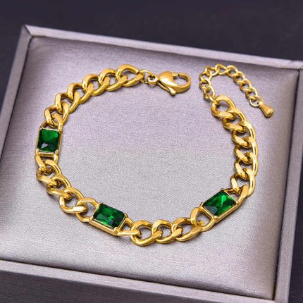 Stainless Steel Cuban Chain Square Stone Bracelet With Gold-Plated For Women & Girls ₹1,999.00 Original price was: ₹1,999.00.₹299.00Current price is: ₹299.00.Piece