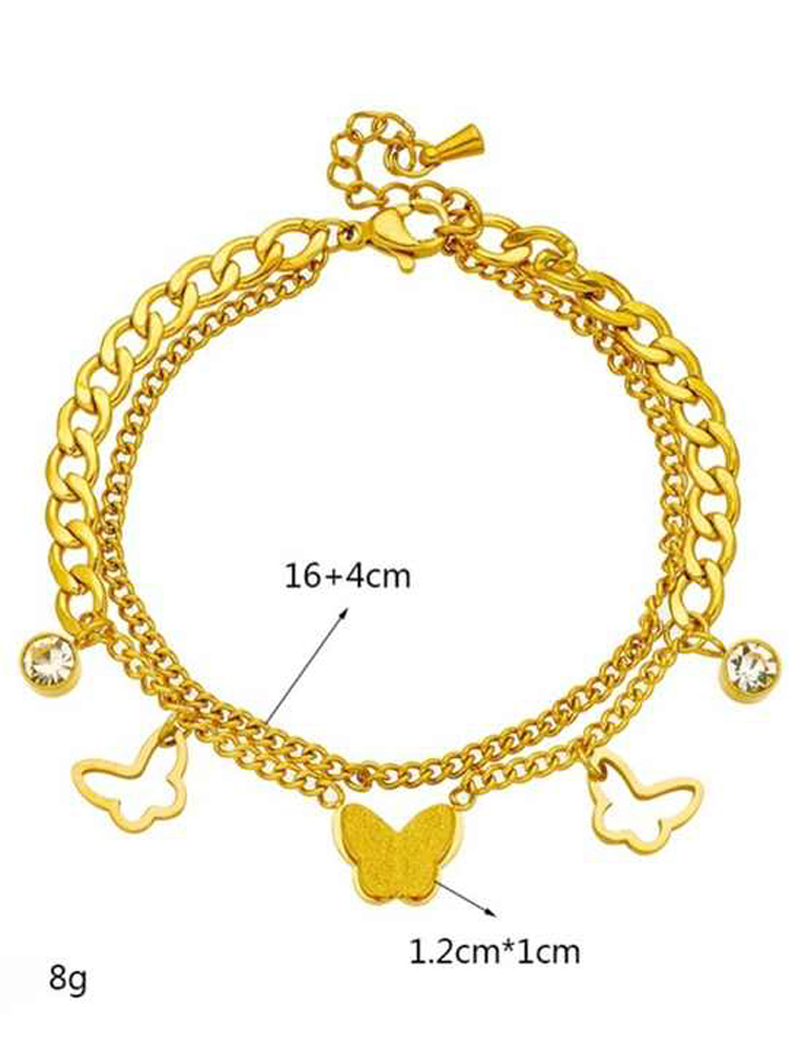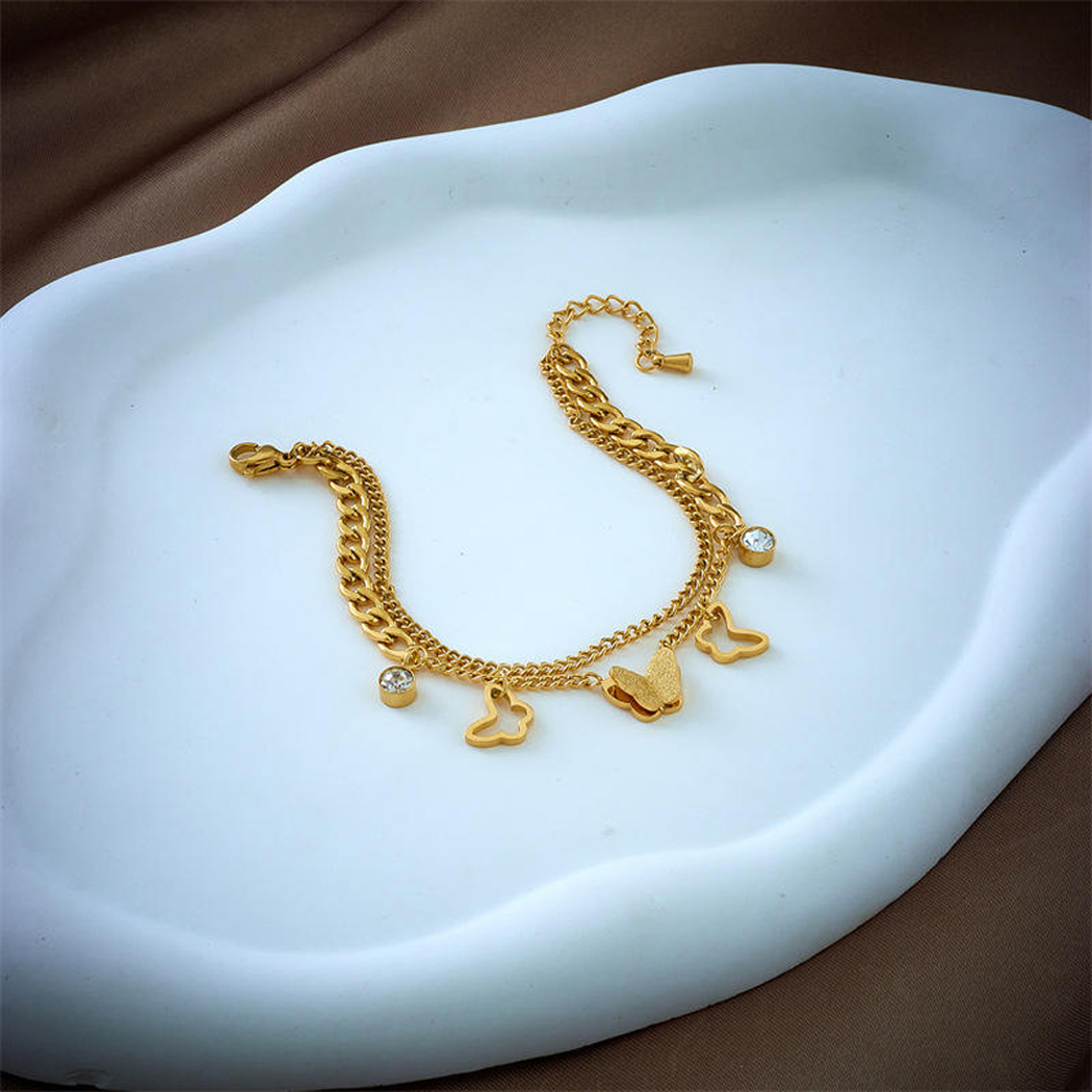 free. This type of bracelet is often favored for its durability, affordability, and stylish design, making it a popular choice for both casual and formal wear. When purchasing a stainless steel anti-tarnish butter-fly bracelet, you may want to consider factors such as the quality of the stainless steel used, the design and craftsmanship of the bracelet, and any additional features such as adjustable clasps or embellishments. Ad Additionally, proper care and maintenance will help prolong the life and beauty of the bracelet, ensuring that it remains a cherished accessory for years to come. Mostly world wide and western culture used this type of bracelets and make him self more satisfying and most happily enjoy all Functions with these Bracelets.