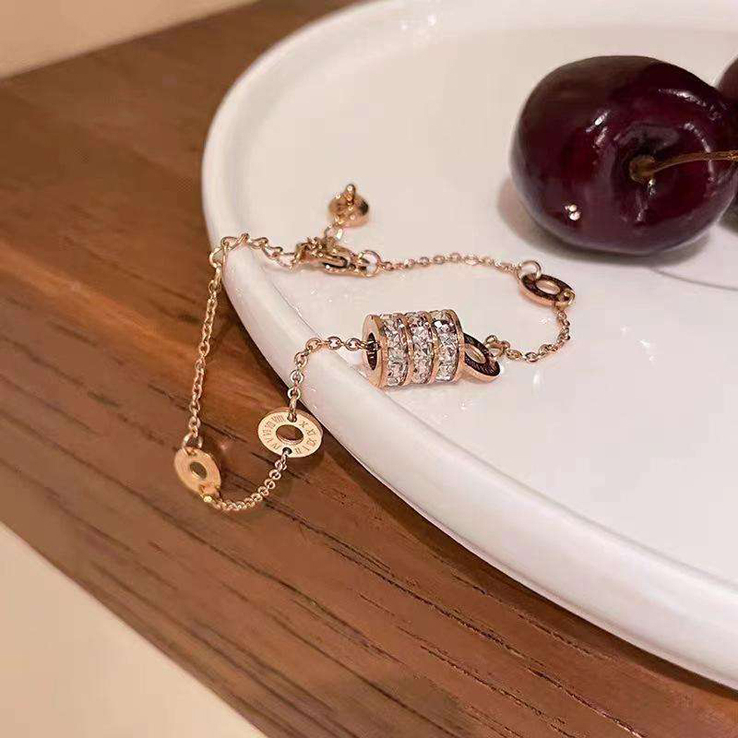 Stainless Steel Korean Roman Chain Bracelet With Rose-Gold-Plated For Women & Girl