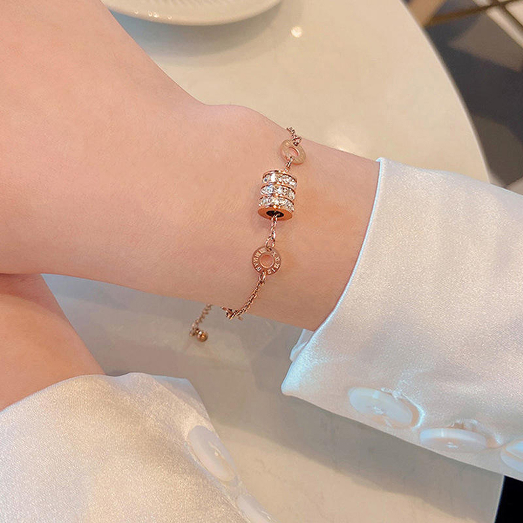 Home Bracelets Stainless Steel Korean Roman Chain Bracelet With Rose-Gold-Plated For Women & Girl