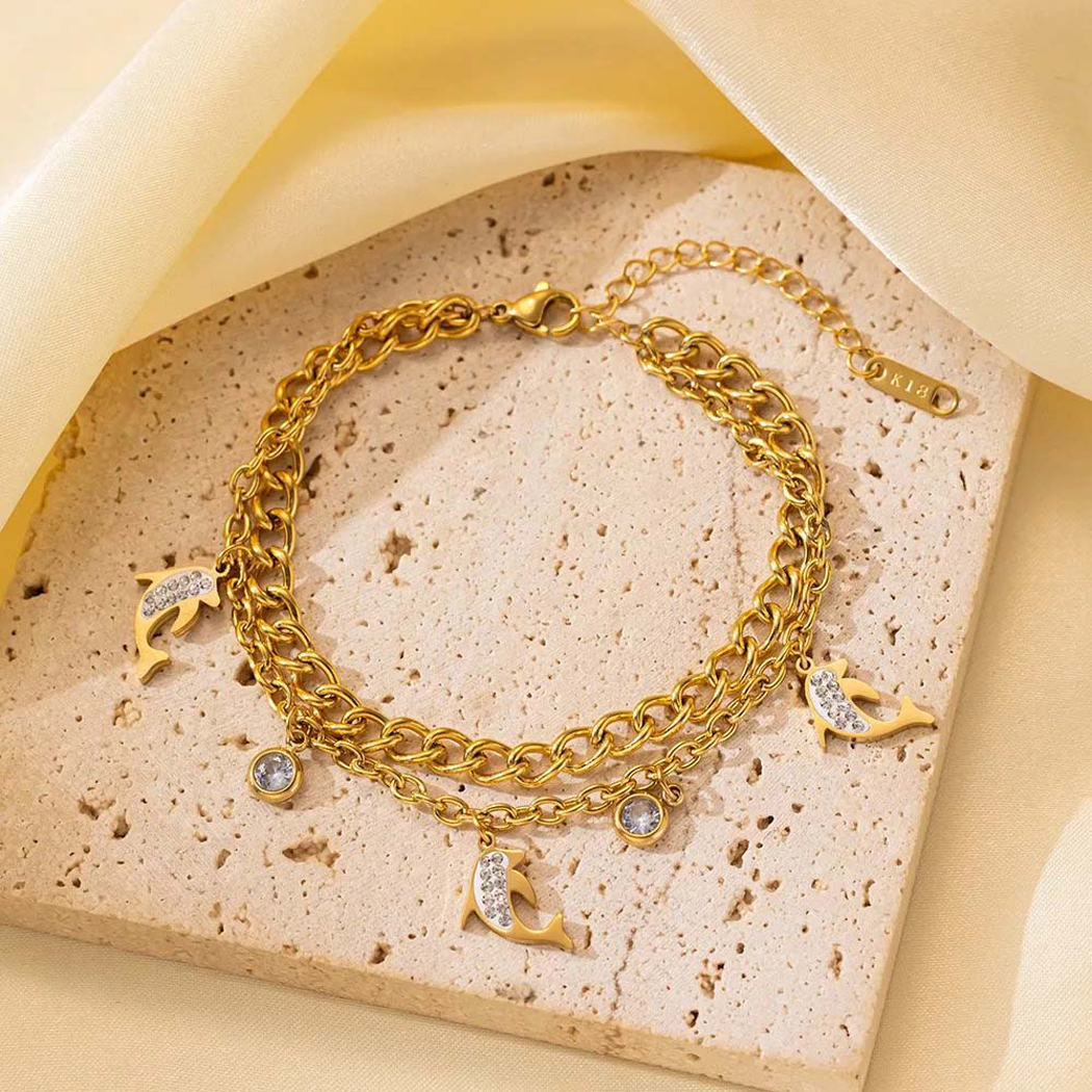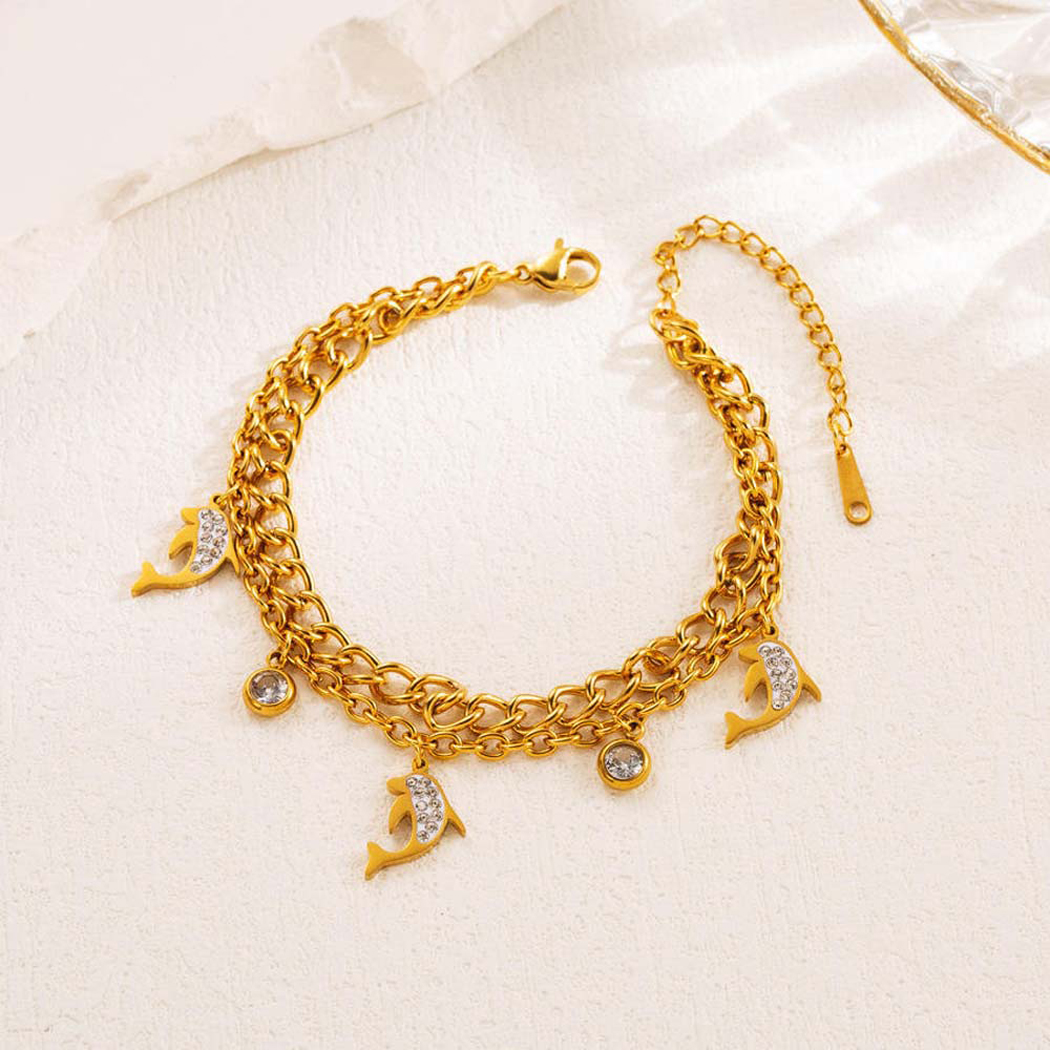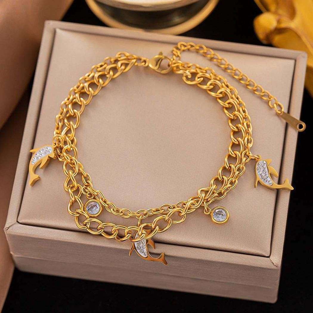 Stainless Steel New Fashion Fine Jewelry 4 Styles 2-Layer Zircon Butterfly Leafs Dolphin Charm Chain Bracelets For Women ₹1,999.00 Original price was: ₹1,999.00.₹260.00Current price is: ₹260.00.Piece