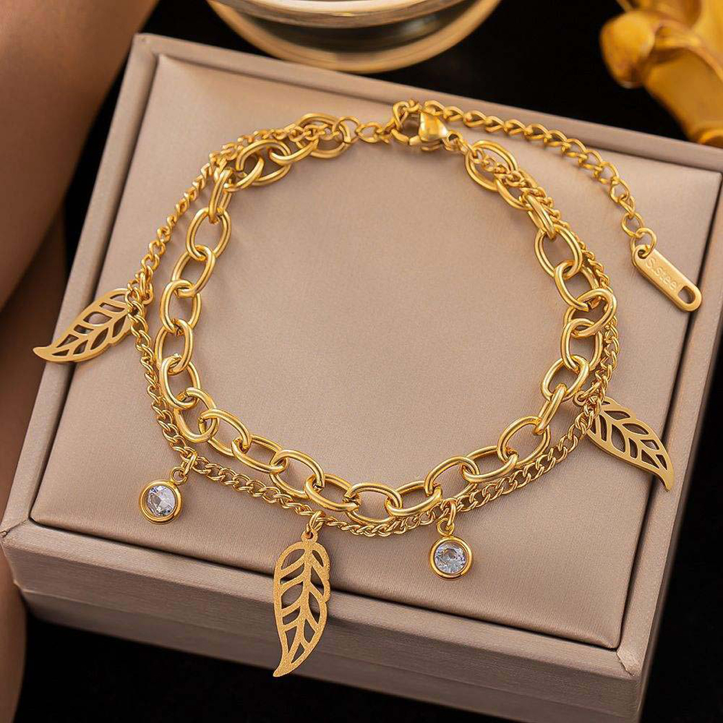 Stainless Steel Gold Color Leaves Leaf Charm Bracelet For Women New Trend Girls 2-Layer Wrist Chains Jewelry Gifts ₹1,999.00 Original price was: ₹1,999.00.₹260.00Current price is: ₹260.00.Piece